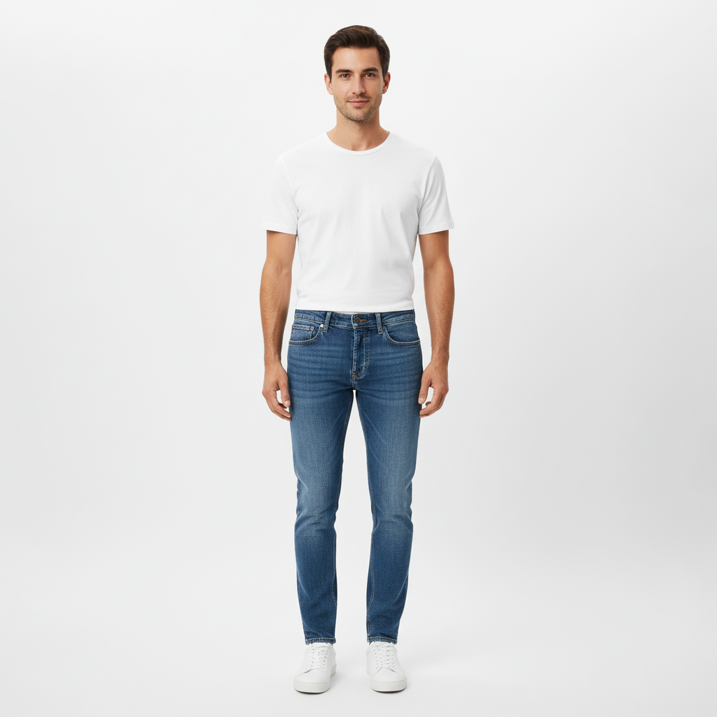 - An iconic essential, these reimagined jeans are made with cotton stretch denim for a flexible fit and feel.