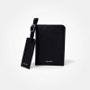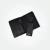 - Textured genuine leather upper Bi-fold construct with slots