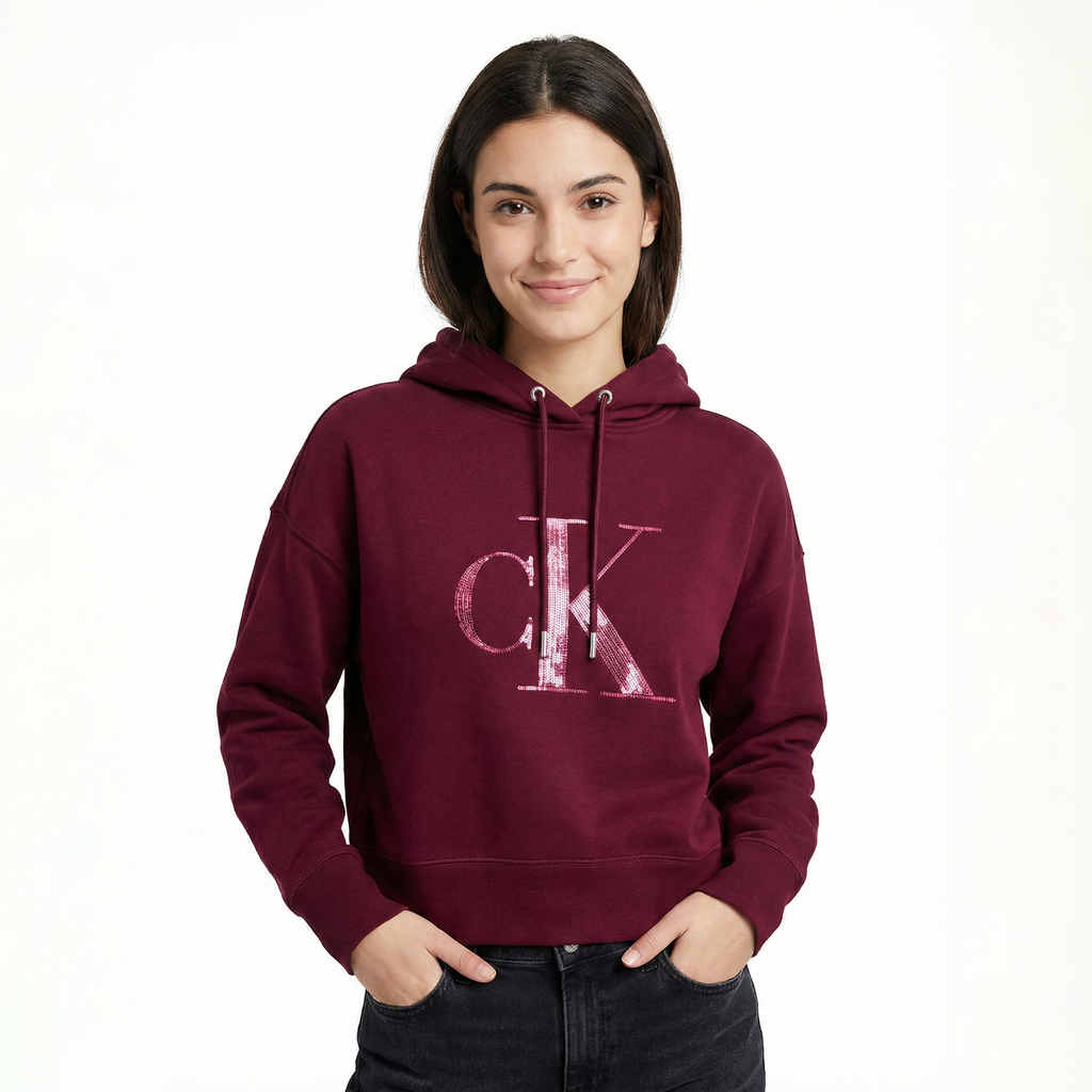 Calvin Klein Women Fleece Sequin Monogram Relaxed Hoodie