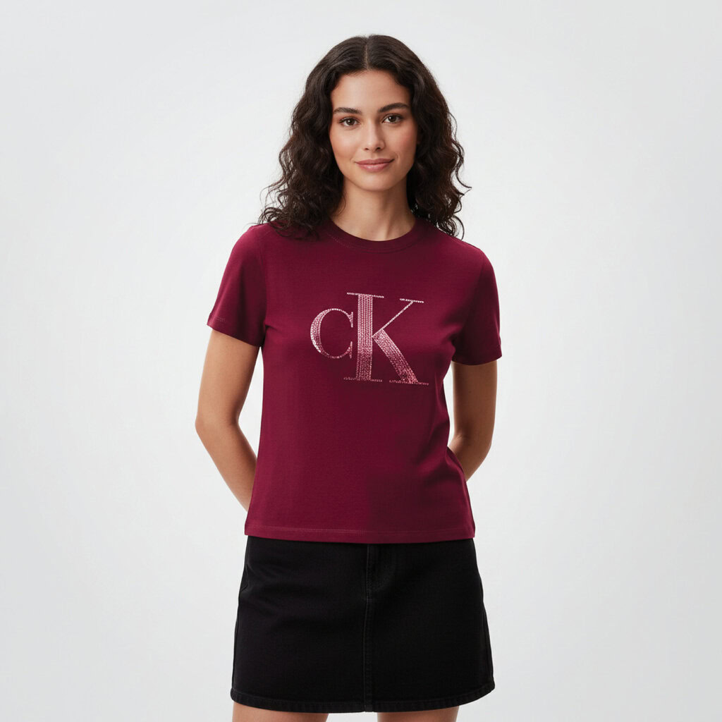 Calvin Klein Women Sequin Monogram Classic T-Shirt