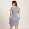 - It features a ribbed crew neckline and short sleeves for a laidback feel, with the hem hittin’ above the knees.