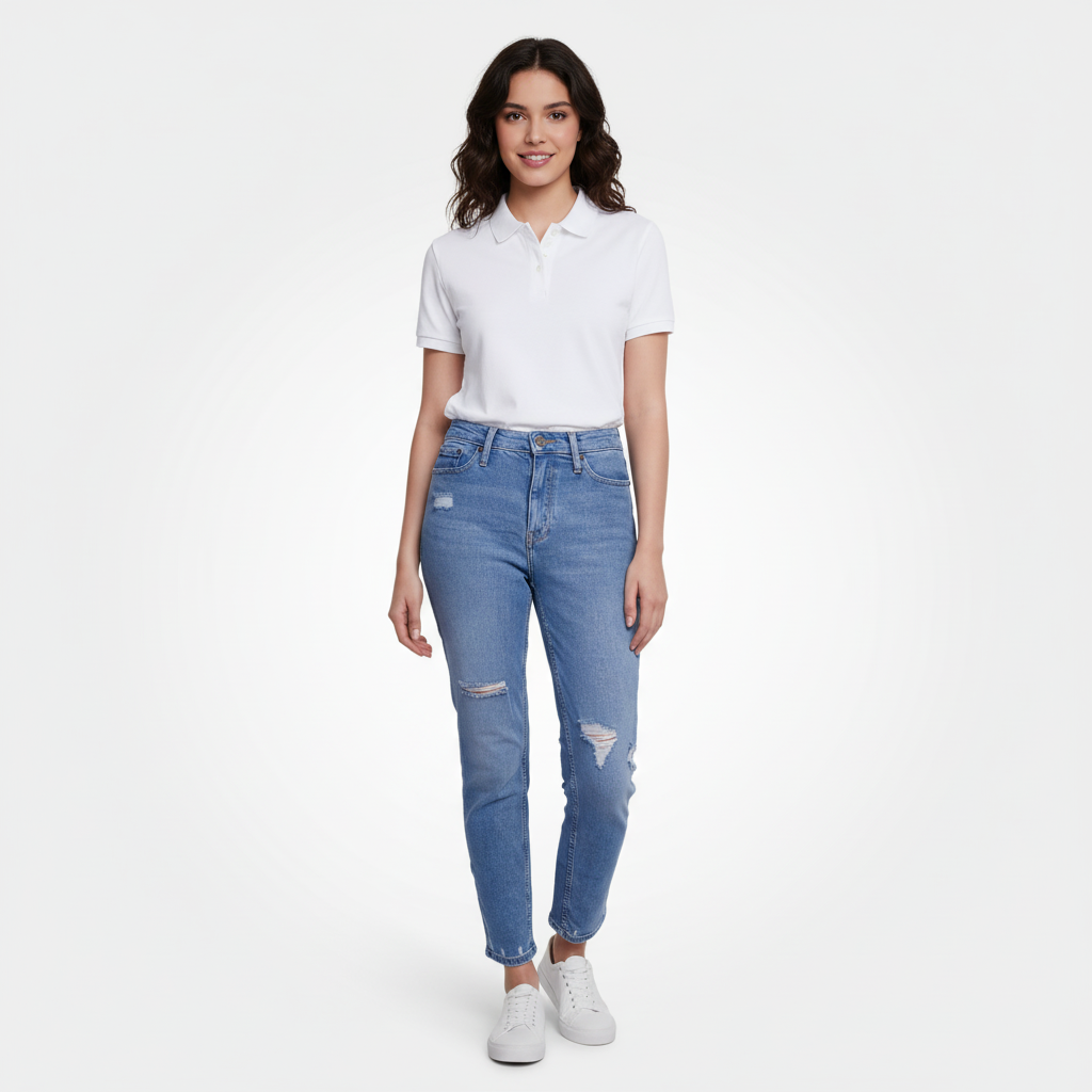 - Updated with metal hardware and redrawn back pocket omega stitching