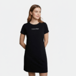 • This resolutely casual T-shirt dress can be found in the new Calvin Klein collection.