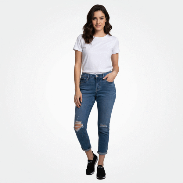 Calvin Klein Women’s Tattered Mid Rise Slim Boyfriend Jeans