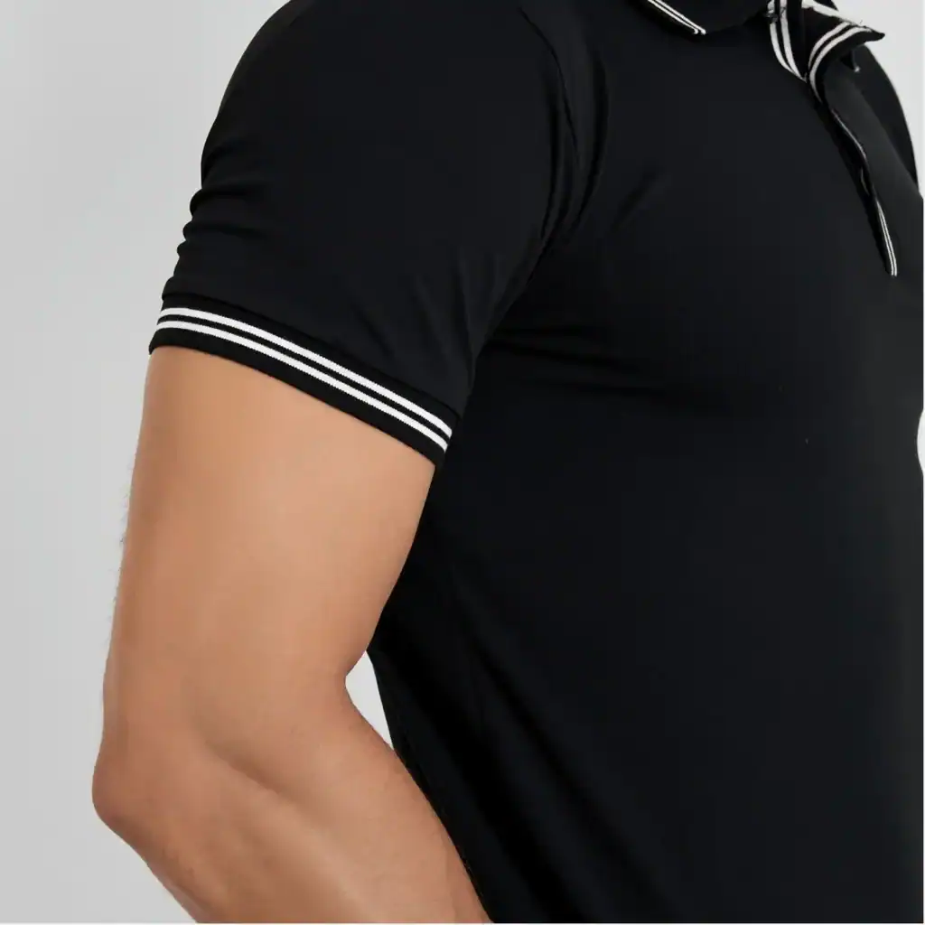 - This cotton-jersey style has a front logo crest, collar with three central buttons and short sleeves.