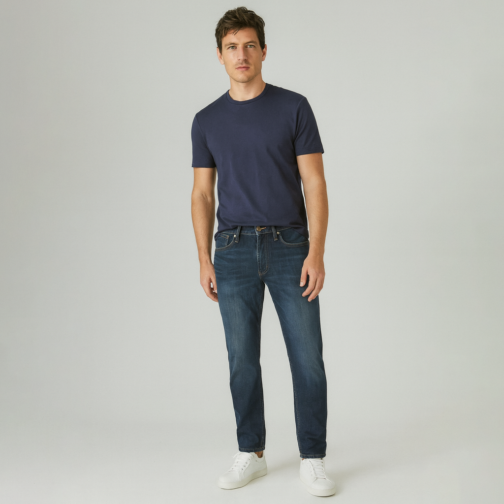 Perfect for weekend wear, these slim-fit jeans feature a tapered leg with whiskering and faded detailing for a lived-in look.