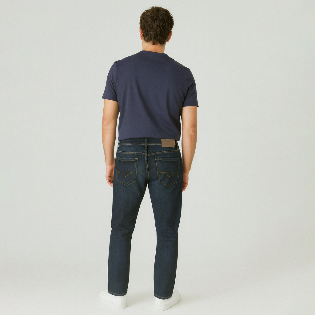 - Dark Wash: Dark indigo denim with whiskering and faded detailing. Due to the nature of the fabric and wash, each garment has its own unique appearance.