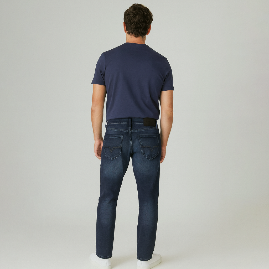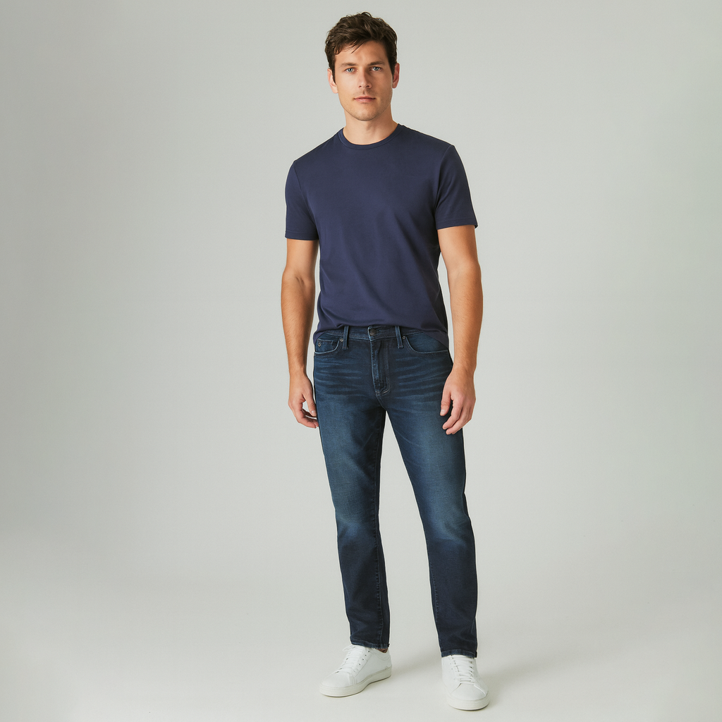 - Medium rise, sits at hips. Slim fit with tapered leg.