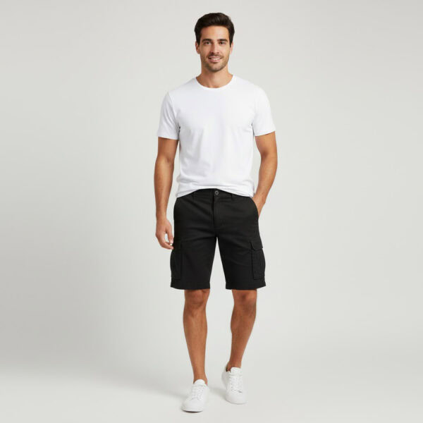 - Advanced Stretch twill featuring side cargo pockets and an 11″ inseam.