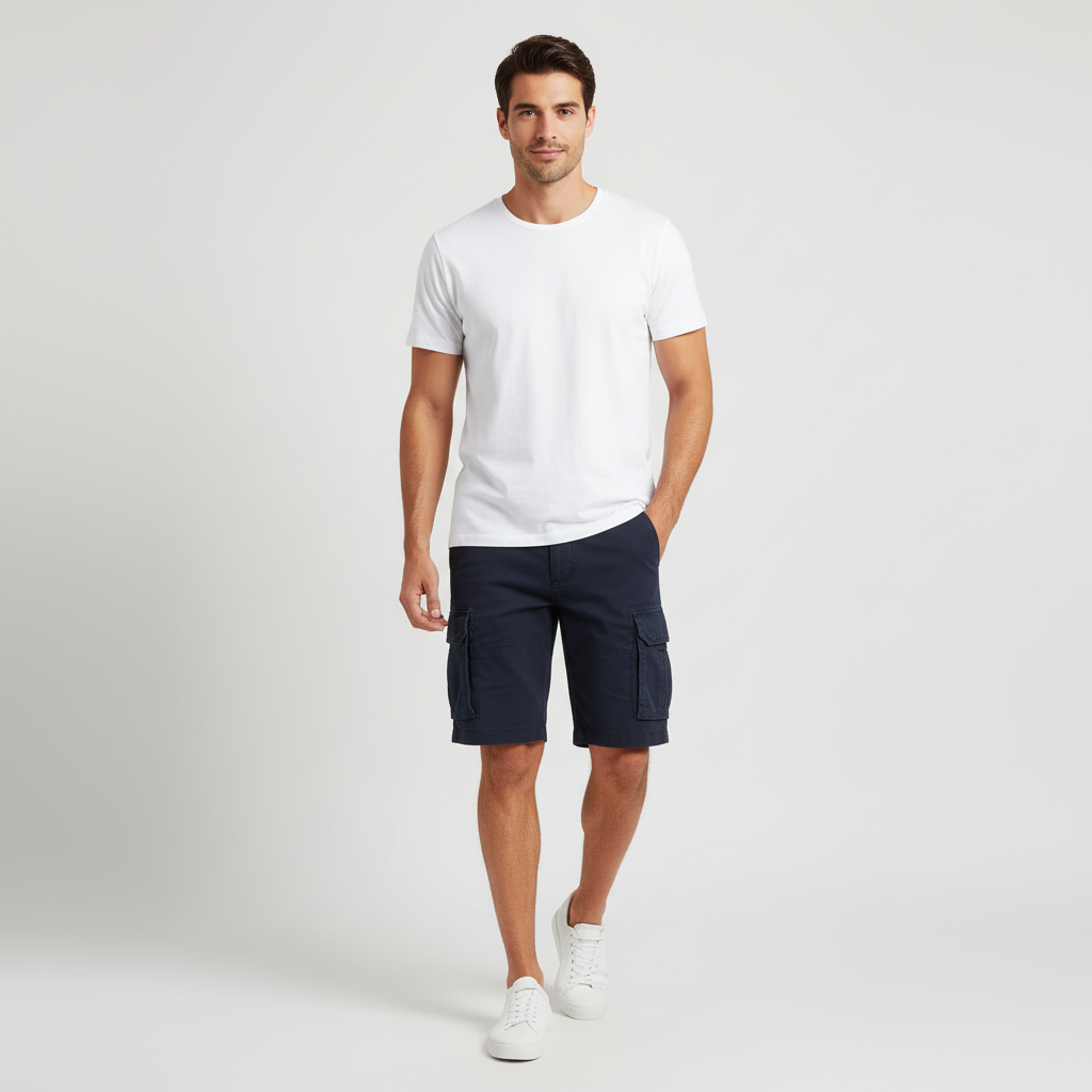- Advanced Stretch twill featuring side cargo pockets and an 11″ inseam.