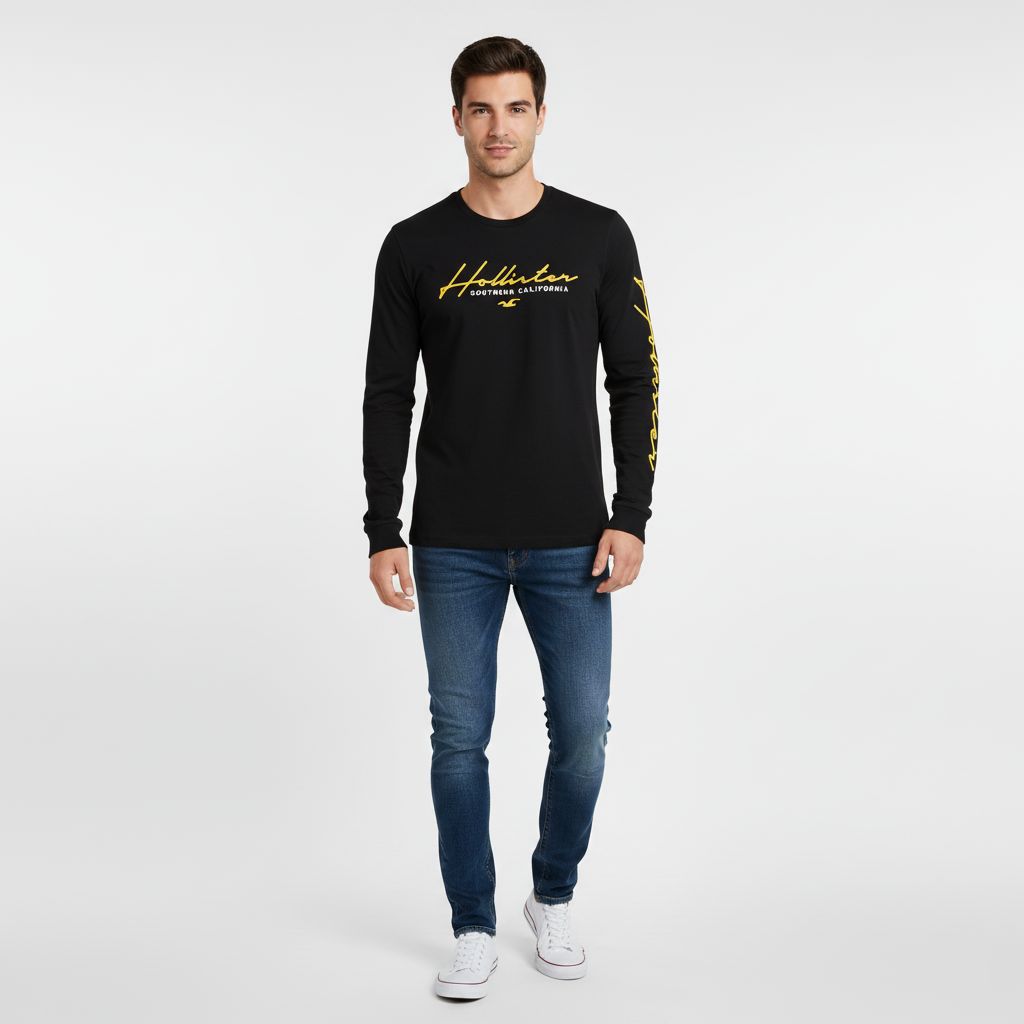 - Embroidered Hollister signature branding on the chest
