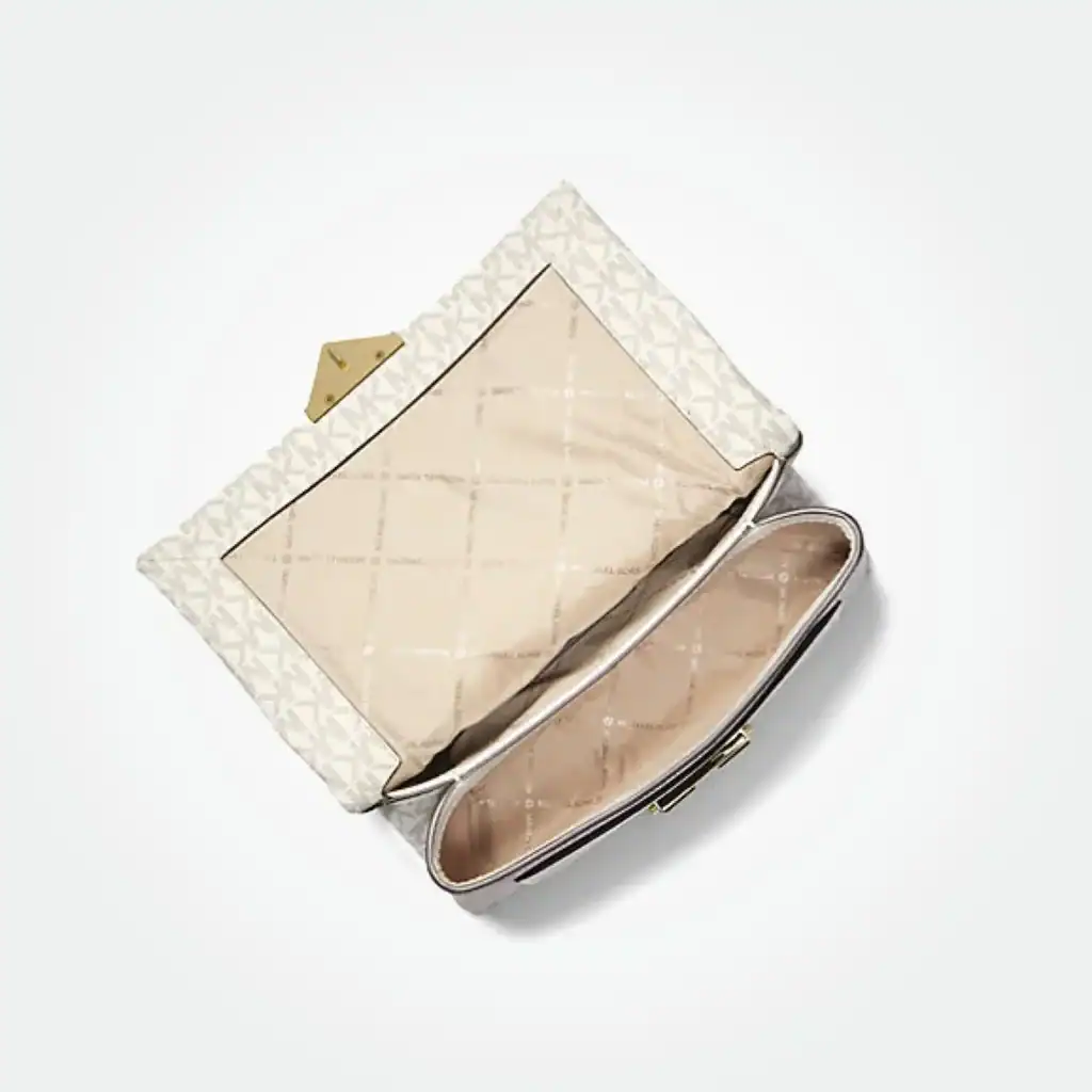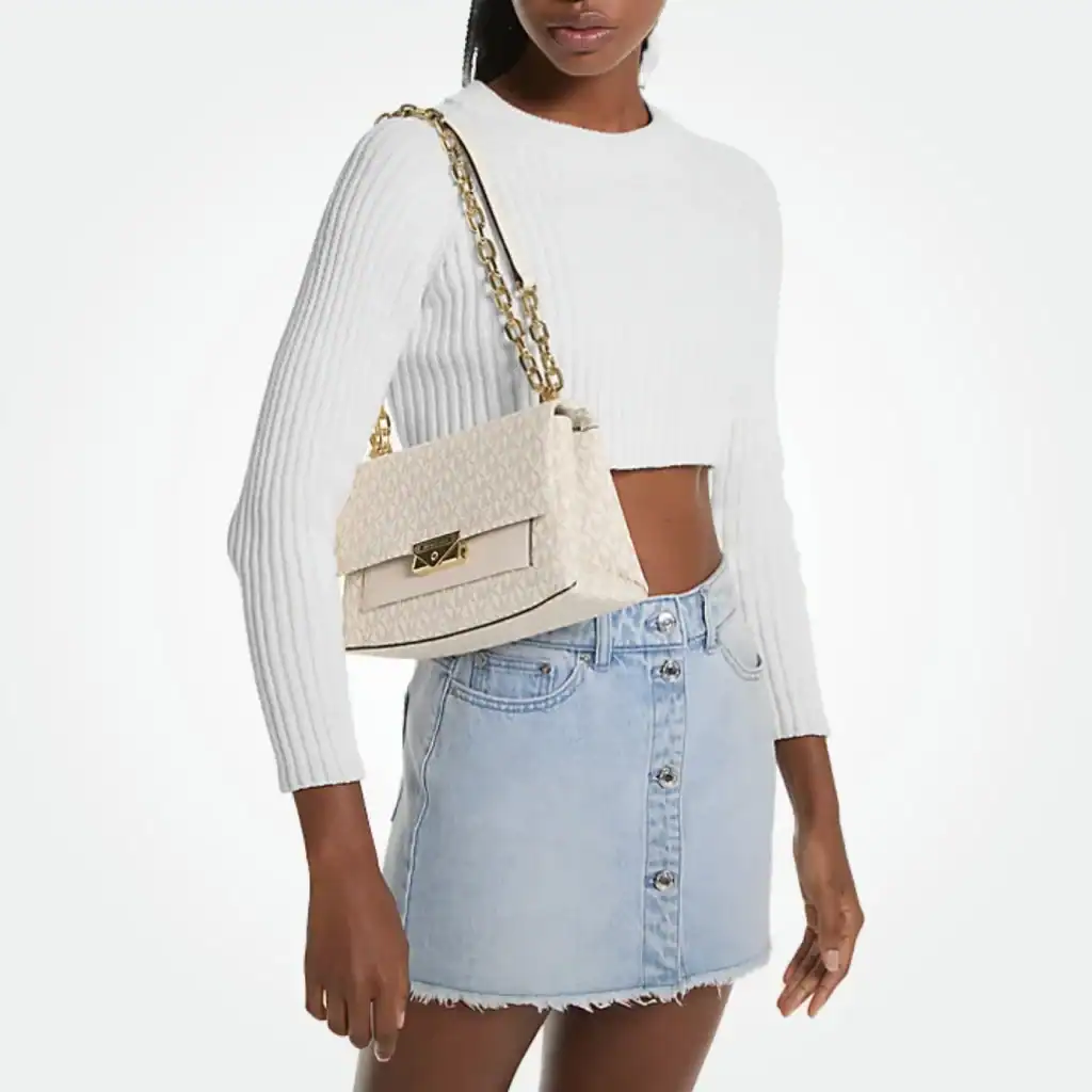 One bag, many occasions: the Signature-print Cece defines everyday sophistication. Designed in a fold-over silhouette with gleaming hardware and a lock-and-key detail, it’s generously sized to hold all your daily essentials. Reach for it to top off any look with polish.