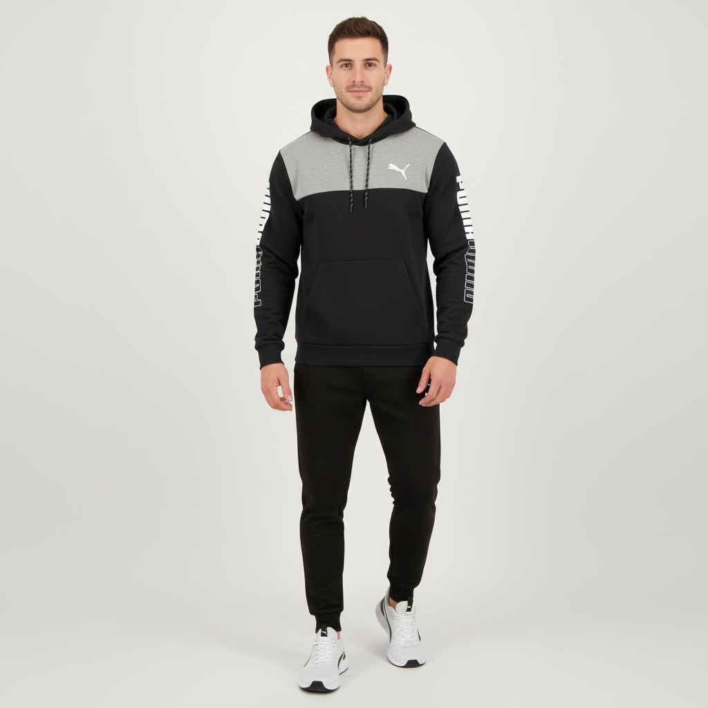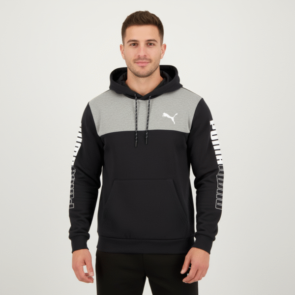 - The Puma Hoodie is a classic leisure wear, designed with a fixed hood, long sleeves and kangaroo front pocket.