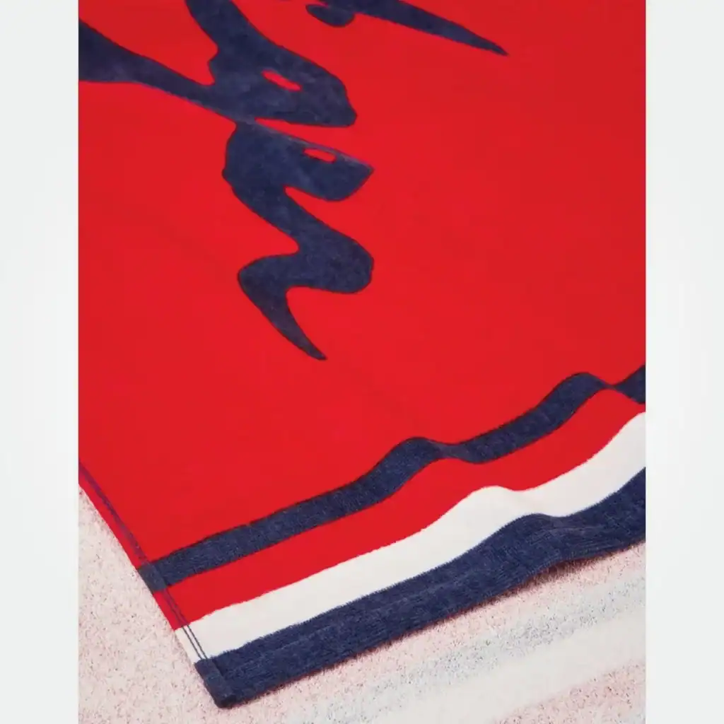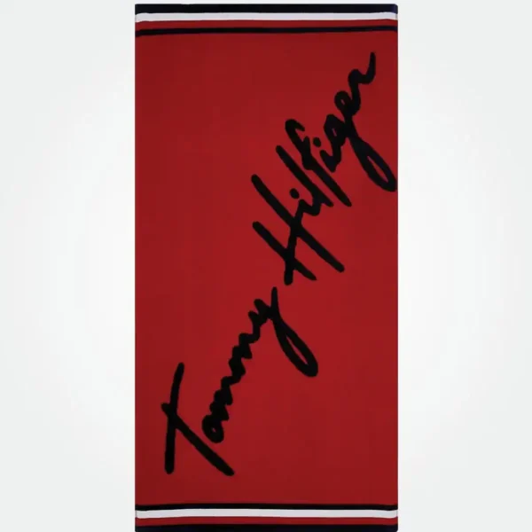 - Relax by the pool side or beach in luxe style with the Tommy Hilfiger Super Signature Beach Towel