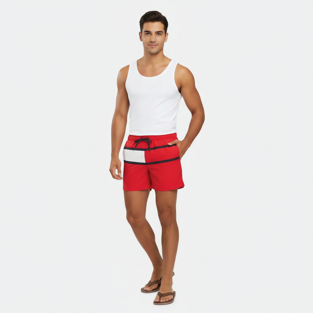 - Tote these monogram flag shorts to the beach with ease thanks to the shock cord at the back for an easy carry.